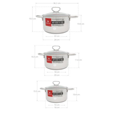 - Nồi 16 cm - cao 10.4 cm.