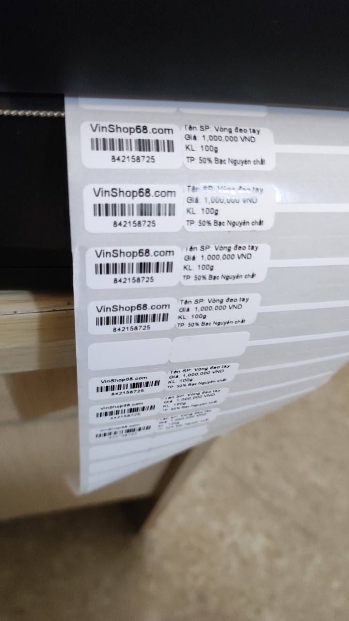 - Sử dụng: In tem mã vạch cao cao cấp cho mỹ phẩm, vật dụng đồ dùng yêu cầu bền cao, in tem cho thiết bị điện tử, thời trang, vàng bạc.