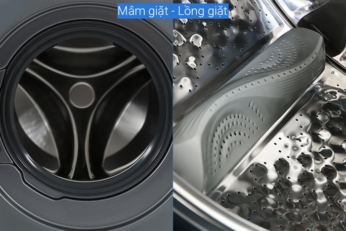 - Lồng giặt bằng thép không gỉ bền bỉ, chống ăn mòn và tình trạng oxy hóa, hạn chế cặn bẩn bám vào giúp lồng giặt.