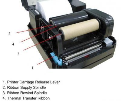+ TTP-244 Pro xử lý cả cuộn ruy băng 300m và một cuộn 8-inch đầy đủ các nhãn.