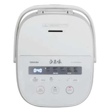 - Nồi cơm điện Toshiba với bảng điều khiển nút nhấn đơn giản, có thêm màn hình hiển thị để tiện theo dõi.