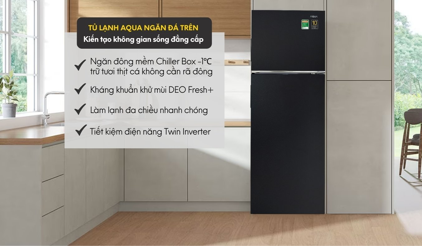Hơn nữa, tủ lạnh Aqua còn trang bị hàng loạt công nghệ hiện đại mang lại tiện nghi tối đa cho người dùng như: công nghệ tiết kiệm điện Twin Inverter, công nghệ khử mùi diệt khuẩn DEO Fresh+, ngăn đông mềm Chiller Box trữ tươi thực phẩm, công nghệ làm lạnh nhanh đa chiều,... Đây hứa hẹn là trợ thủ đắc lực của chị em nội trợ, giúp gia đình bạn luôn có được những bữa ăn ngon và an toàn cho sức khỏe.